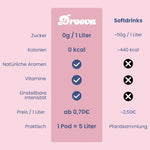 Mit unseren Pods entscheidest du dich für eine umweltfreundlichere Alternative. Jeder Pod ergibt bis zu 5 Liter Getränk und ersetzt damit mehrere Einwegflaschen.